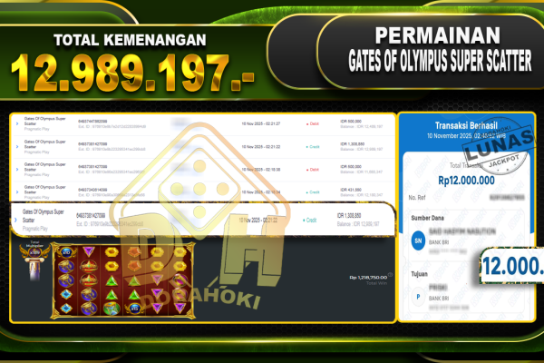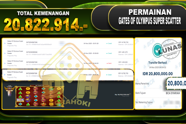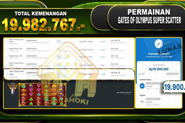 Bukti JP Gates Of Olympus Super Scatter – ucapkan selamat kepada user id stexxx atas kemenangan di Gates Of Olympus Super Scatter dengan total kemenangan Rp.19.982.767,- Yang pasti nya langsung LUNAS sesuai bukti ya bosku. Dorahoki nih bosku berapapun akan tetap kami bayar lunas ya bosku