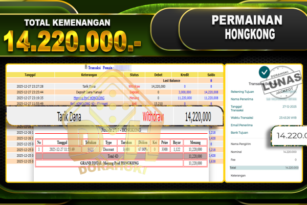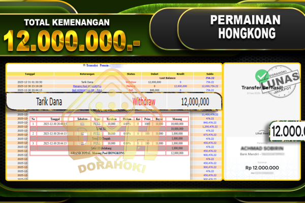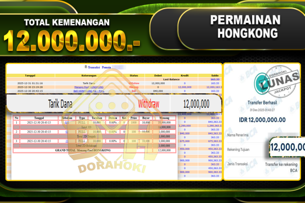Bukti JP TOGEL HONGKONG – ucapkan selamat kepada user id harxxx atas kemenangan di TOGEL HONGKONG dengan total kemenangan Rp.12.000.000,- . Yang pasti nya langsung LUNAS sesuai bukti ya bosku. Dorahoki nih bosku berapapun akan tetap kami bayar lunas ya bosku. Kami mengucapkan Terima Kasih telah mempercayakan DORAHOKI sebagai Bandar Online pilihan dalam bermain judi online….