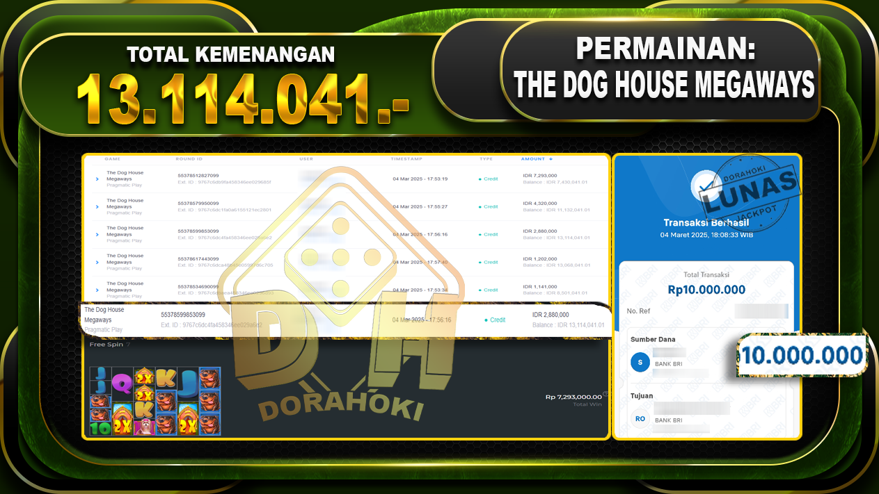 Bukti JP The Dog House Megaways – ucapkan selamat kepada user id Raixxx atas kemenangan di The Dog House Megaways dengan total kemenangan Rp.13,114,041,- . Yang pasti nya langsung LUNAS sesuai bukti ya bosku. Dorahoki nih bosku berapapun akan tetap kami bayar lunas ya bosku.