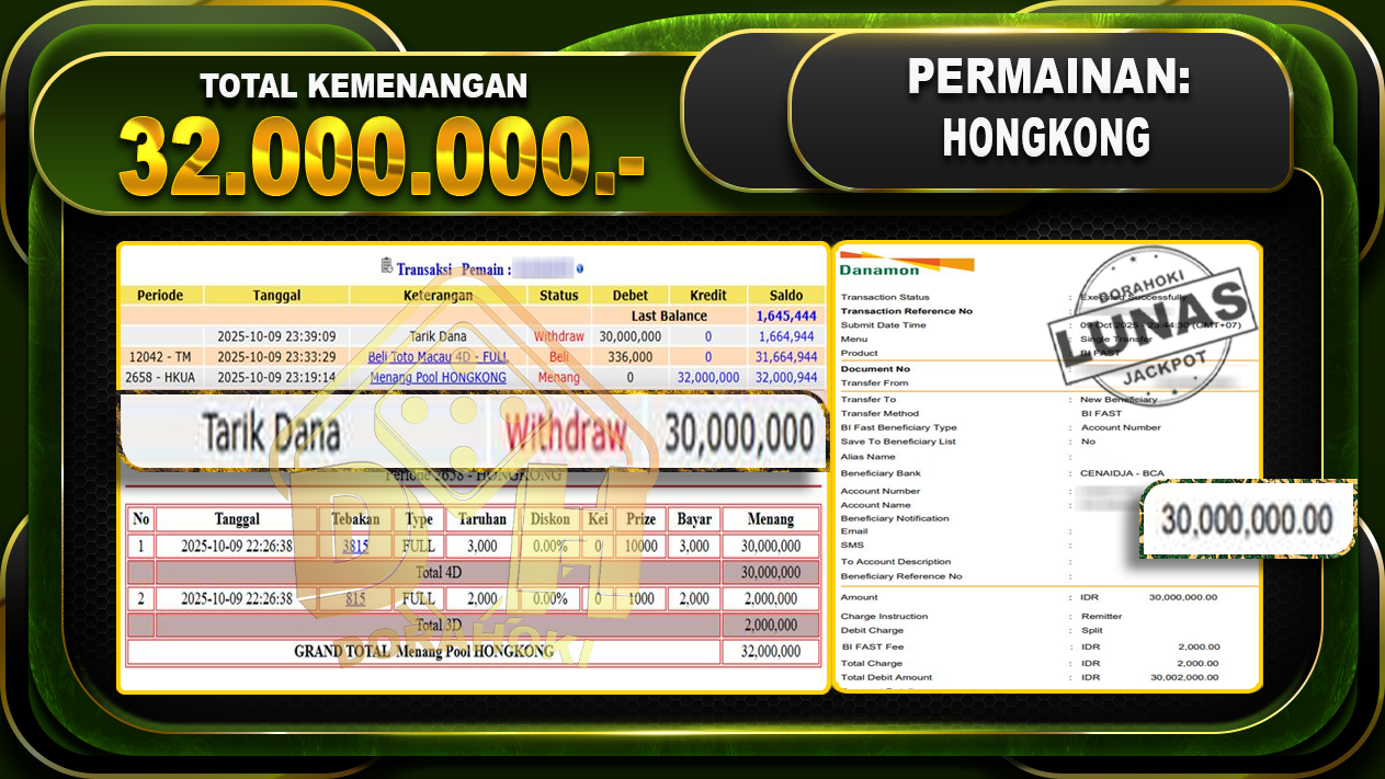 Bukti JP TOGEL HONGKONG – ucapkan selamat kepada user id kutxxxxxx atas kemenangan di TOGEL HONGKONG dengan total kemenangan Rp.32,000,000 ,- . Yang pasti nya langsung LUNAS sesuai bukti ya bosku. Dorahoki nih bosku berapapun akan tetap kami bayar lunas ya bosku.