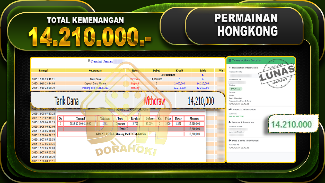 Bukti JP TOGEL HONGKONG – ucapkan selamat kepada user id olvxxxx atas kemenangan di TOGEL HONGKONG dengan total kemenangan Rp.14,210,000,- . Yang pasti nya langsung LUNAS sesuai bukti ya bosku. Dorahoki nih bosku berapapun akan tetap kami bayar lunas ya bosku.