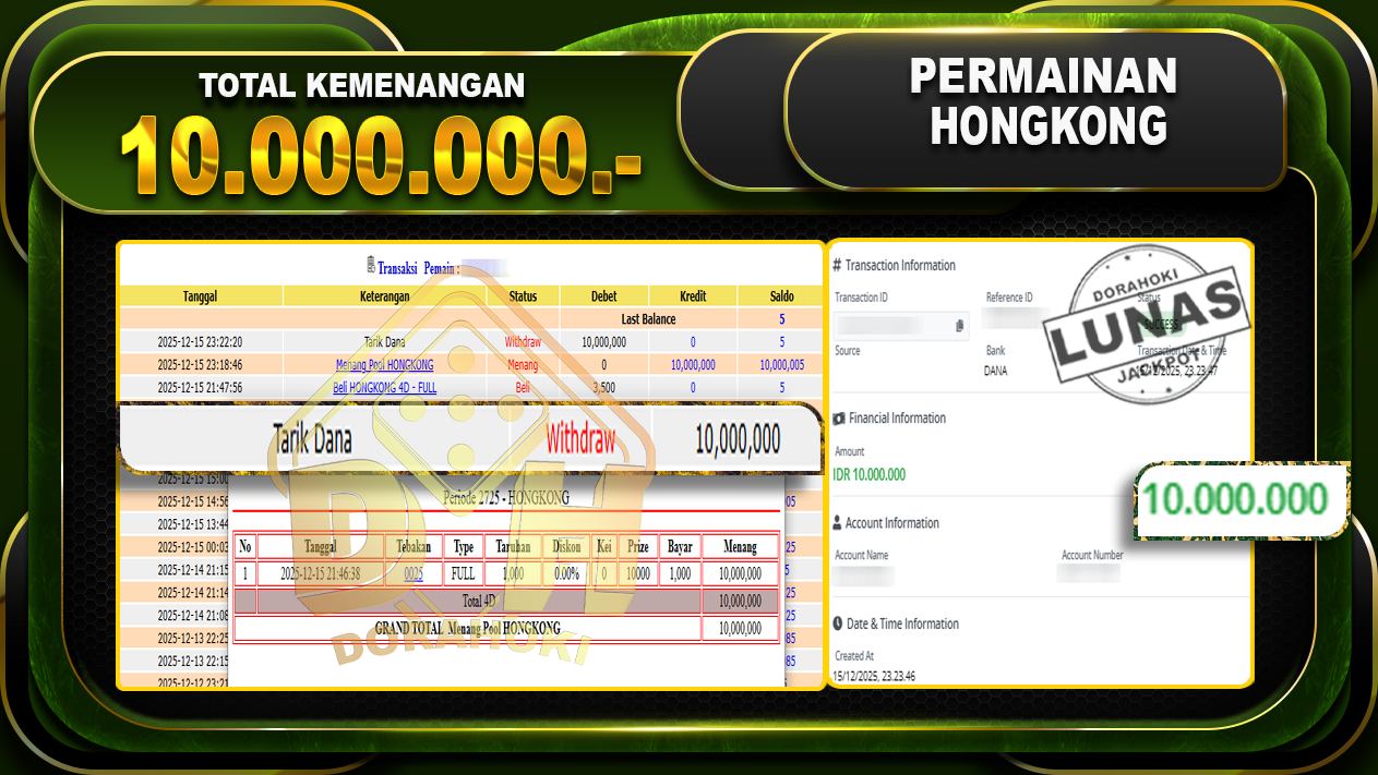 Bukti JP TOGEL HONGKONG – ucapkan selamat kepada user id betxxxxx atas kemenangan di TOGEL HONGKONG dengan total kemenangan Rp.10,000,000,- . Yang pasti nya langsung LUNAS sesuai bukti ya bosku. Dorahoki nih bosku berapapun akan tetap kami bayar lunas ya bosku.