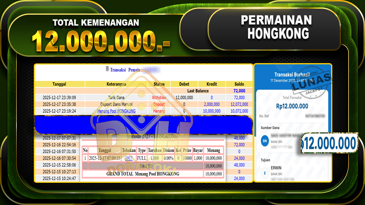 DORAHOKI NIH BOSKU! MENANG BERAPAPUN PASTI KAMI BAYAR LUNAS!!