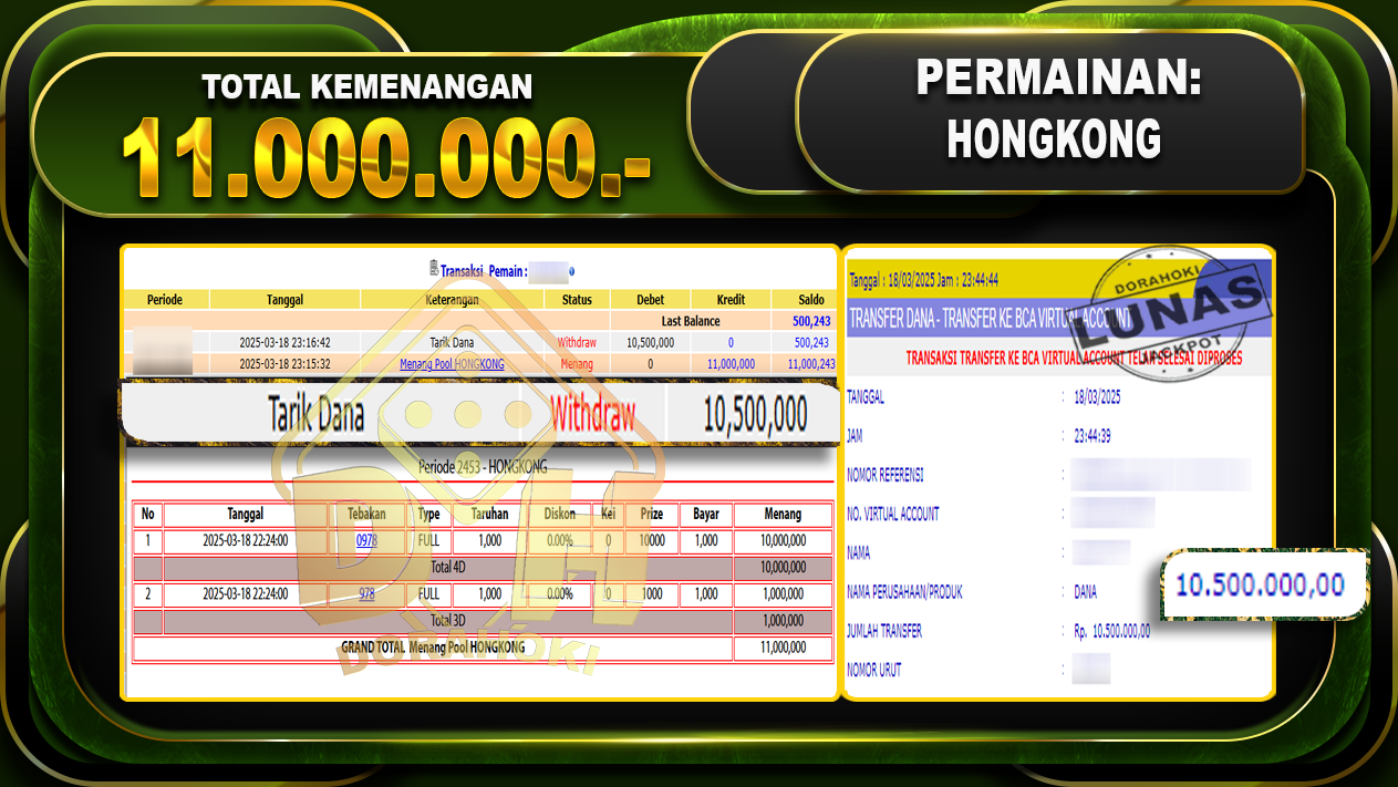 DORAHOKI NIH BOSKU! MENANG BERAPAPUN PASTI KAMI BAYAR LUNAS!!