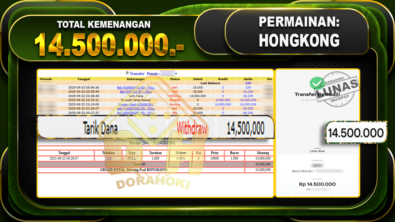 DORAHOKI NIH BOSKU! MENANG BERAPAPUN PASTI KAMI BAYAR LUNAS!!