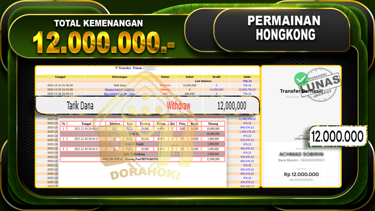Bukti JP TOGEL HONGKONG – ucapkan selamat kepada user id harxxx atas kemenangan di TOGEL HONGKONG dengan total kemenangan Rp.12.000.000,- . Yang pasti nya langsung LUNAS sesuai bukti ya bosku. Dorahoki nih bosku berapapun akan tetap kami bayar lunas ya bosku.