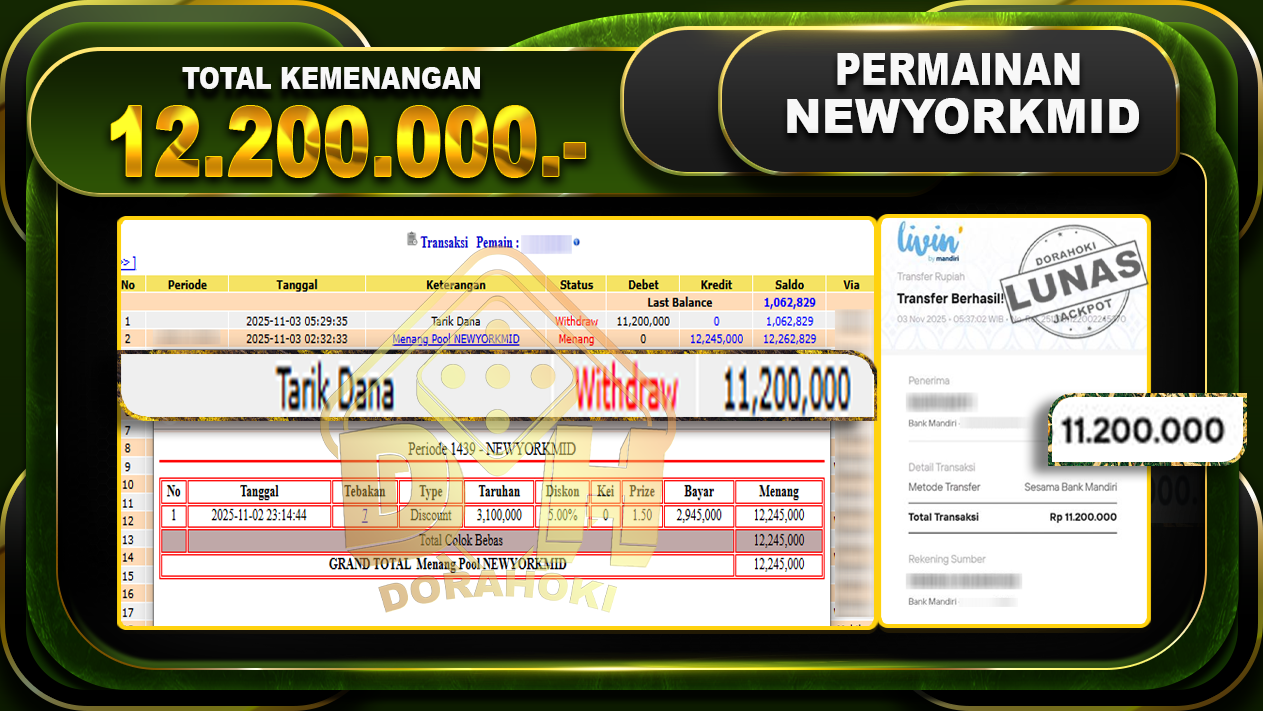Bukti JP TOGEL NEWYORKMID – ucapkan selamat kepada user id rivxxxxx atas kemenangan di TOGEL NEWYORKMID dengan total kemenangan Rp.12,200,00 ,- . Yang pasti nya langsung LUNAS sesuai bukti ya bosku. Dorahoki nih bosku berapapun akan tetap kami bayar lunas ya bosku.