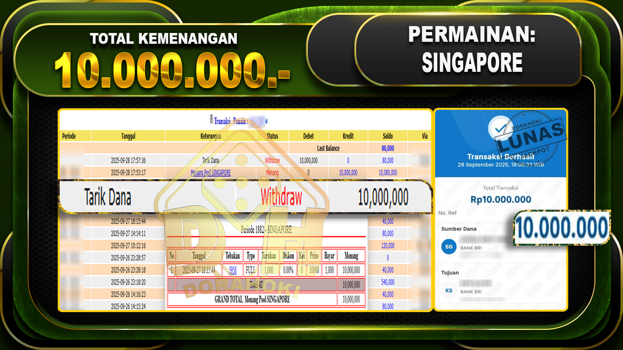 DORAHOKI NIH BOSKU! MENANG BERAPAPUN PASTI KAMI BAYAR LUNAS!!