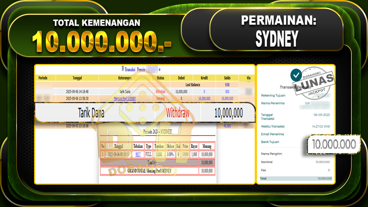 Bukti JP TOGEL SYDNEY – ucapkan selamat kepada user id Kokxxxxx atas kemenangan di TOGEL SYDNEY dengan total kemenangan Rp.10,000,000,- Yang pasti nya langsung LUNAS sesuai bukti ya bosku. Dorahoki nih bosku berapapun akan tetap kami bayar lunas ya bosku