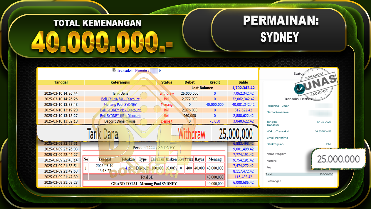 DORAHOKI NIH BOSKU! MENANG BERAPAPUN PASTI KAMI BAYAR LUNAS!!