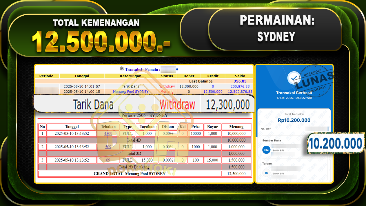 Bukti JP TOGEL SYDNEY – ucapkan selamat kepada user id Igoxxx atas kemenangan di TOGEL SYDNEY dengan total kemenangan Rp.12.500.000,- . Yang pasti nya langsung LUNAS sesuai bukti ya bosku. Dorahoki nih bosku berapapun akan tetap kami bayar lunas ya bosku.