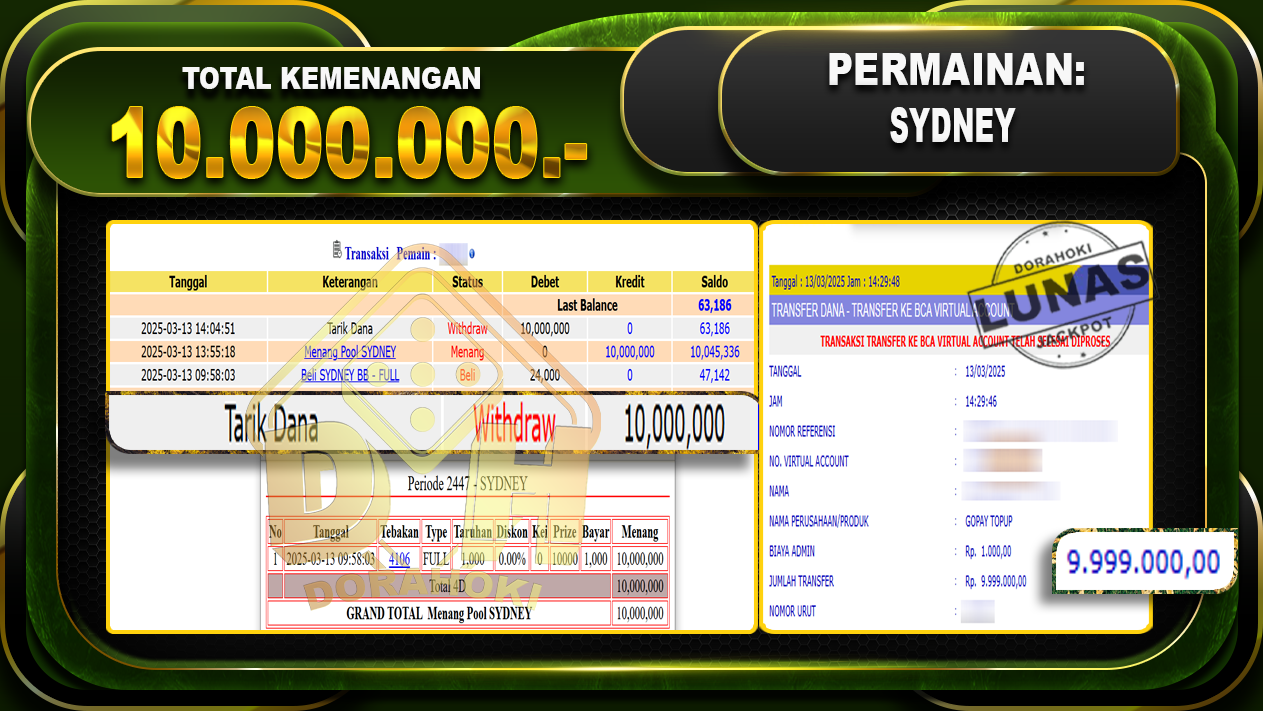 DORAHOKI NIH BOSKU! MENANG BERAPAPUN PASTI KAMI BAYAR LUNAS!!