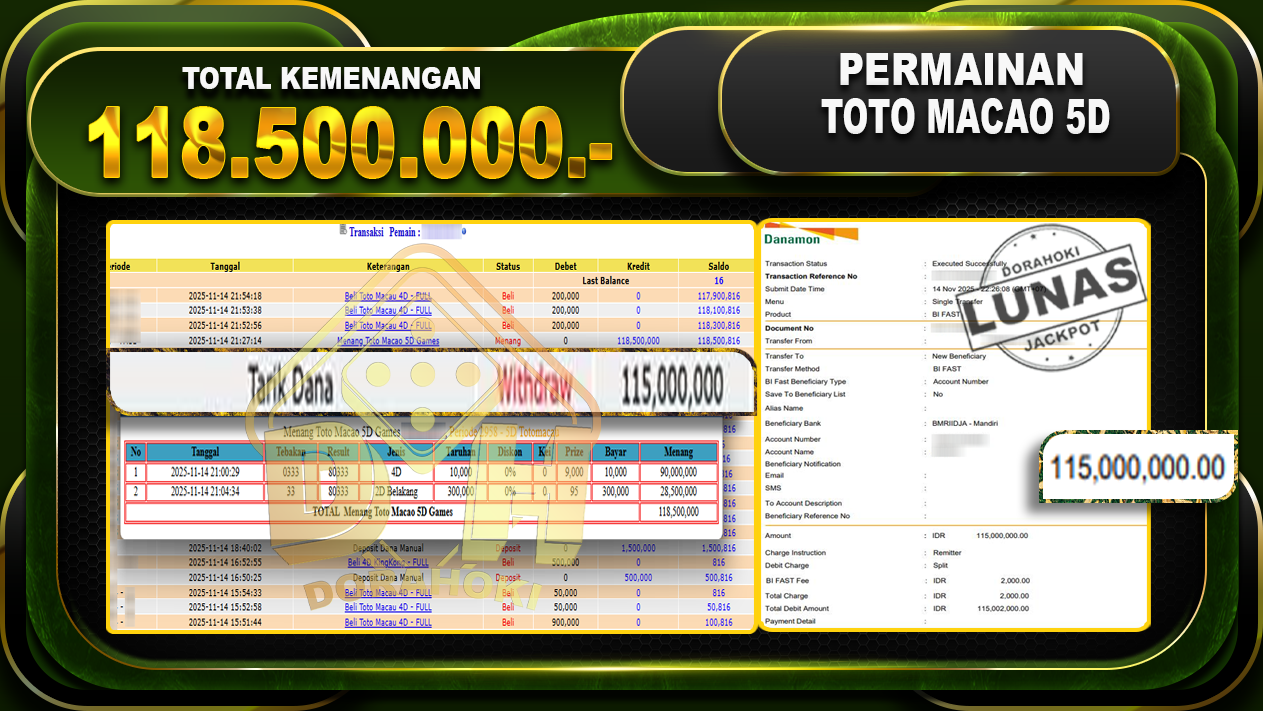 Bukti JP TOGEL SYDNEY – ucapkan selamat kepada user id henxxxxx atas kemenangan di TOGEL SYDNEY dengan total kemenangan Rp.23,500,000,- Yang pasti nya langsung LUNAS sesuai bukti ya bosku. Dorahoki nih bosku berapapun akan tetap kami bayar lunas ya bosku