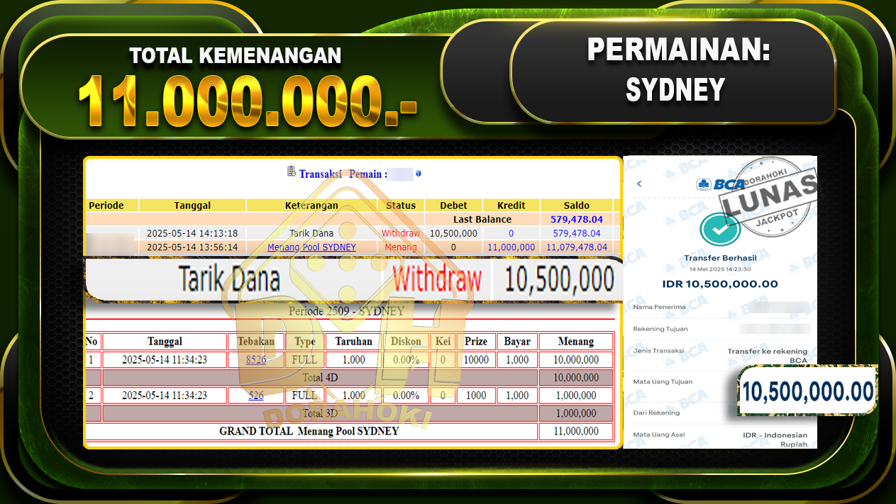 Bukti JP TOGEL SYDNEY – ucapkan selamat kepada user id Rogxxx atas kemenangan di  TOGEL SYDNEY  dengan total kemenangan Rp.11.000.000,- . Yang pasti nya langsung LUNAS sesuai bukti ya bosku. Dorahoki nih bosku berapapun akan tetap kami bayar lunas ya bosku.