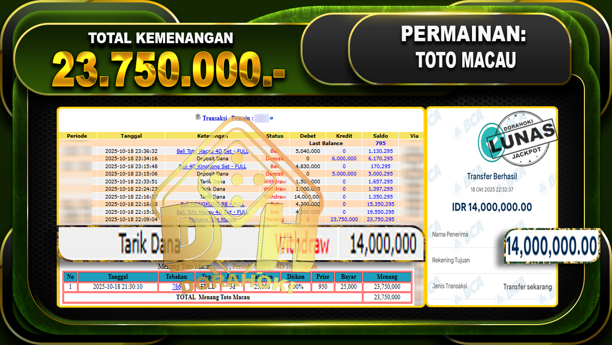 DORAHOKI NIH BOSKU! MENANG BERAPAPUN PASTI KAMI BAYAR LUNAS!!