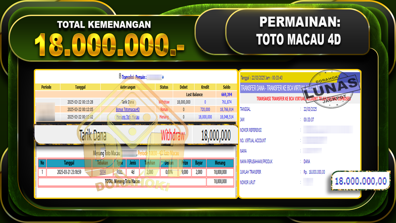 Bukti JP TOGEL TOTO MACAU 4D – ucapkan selamat kepada user id Bukti JP TOGEL TOTO MACAU 4D Dengan total kemenangan Rp12 Juta Rupiah yang tentunya di bayarkan langsung LUNAS & tanpa RIBET ya bosku ^^Nonxxx atas kemenangan di TOGEL TOTO MACAU 4D dengan total kemenangan Rp.18.000.000,- . Yang pasti nya langsung LUNAS sesuai bukti ya bosku. Dorahoki nih bosku berapapun akan tetap kami bayar lunas ya bosku.