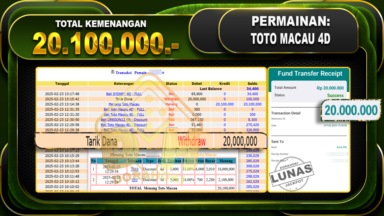 DORAHOKI NIH BOSKU! MENANG BERAPAPUN PASTI KAMI BAYAR LUNAS!!