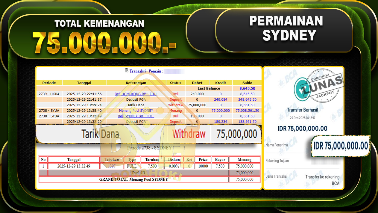 Dengan Min Deposit: Rp.10,000, Min Withdraw: Rp.25,000, Min Bettingan: Rp.100/line harga ini terjangkau untuk semua kalangan. Hanya dengan deposit minimal 10rb bisa dapat kesempatan melipat gandakan uang hingga ratusan juta. tentu saja tidak perlu khawatir untuk pembayaran.