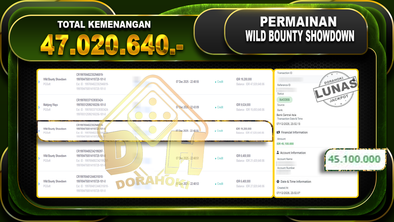 Bukti JP Wild Bounty Showdown – ucapkan selamat kepada user id bawxxatas kemenangan di Wild Bounty Showdown dengan total kemenangan Rp.47.020.640,- Yang pasti nya langsung LUNAS sesuai bukti ya bosku. Dorahoki nih bosku berapapun akan tetap kami bayar lunas ya bosku