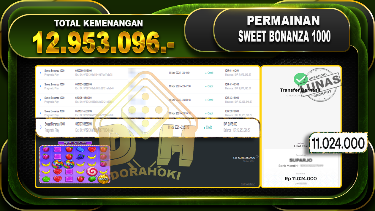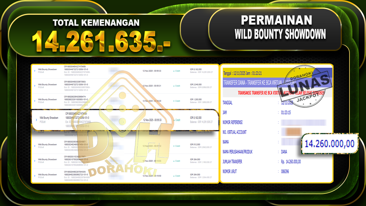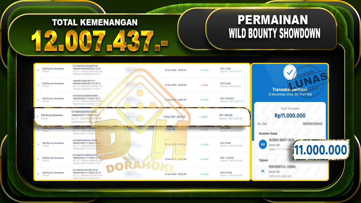 Bukti JP Wild Bounty Showdown – ucapkan selamat kepada user id kobxxxxx atas kemenangan di Wild Bounty Showdown dengan total kemenangan Rp.12.007.437,- Yang pasti nya langsung LUNAS sesuai bukti ya bosku. Dorahoki nih bosku berapapun akan tetap kami bayar lunas ya bosku