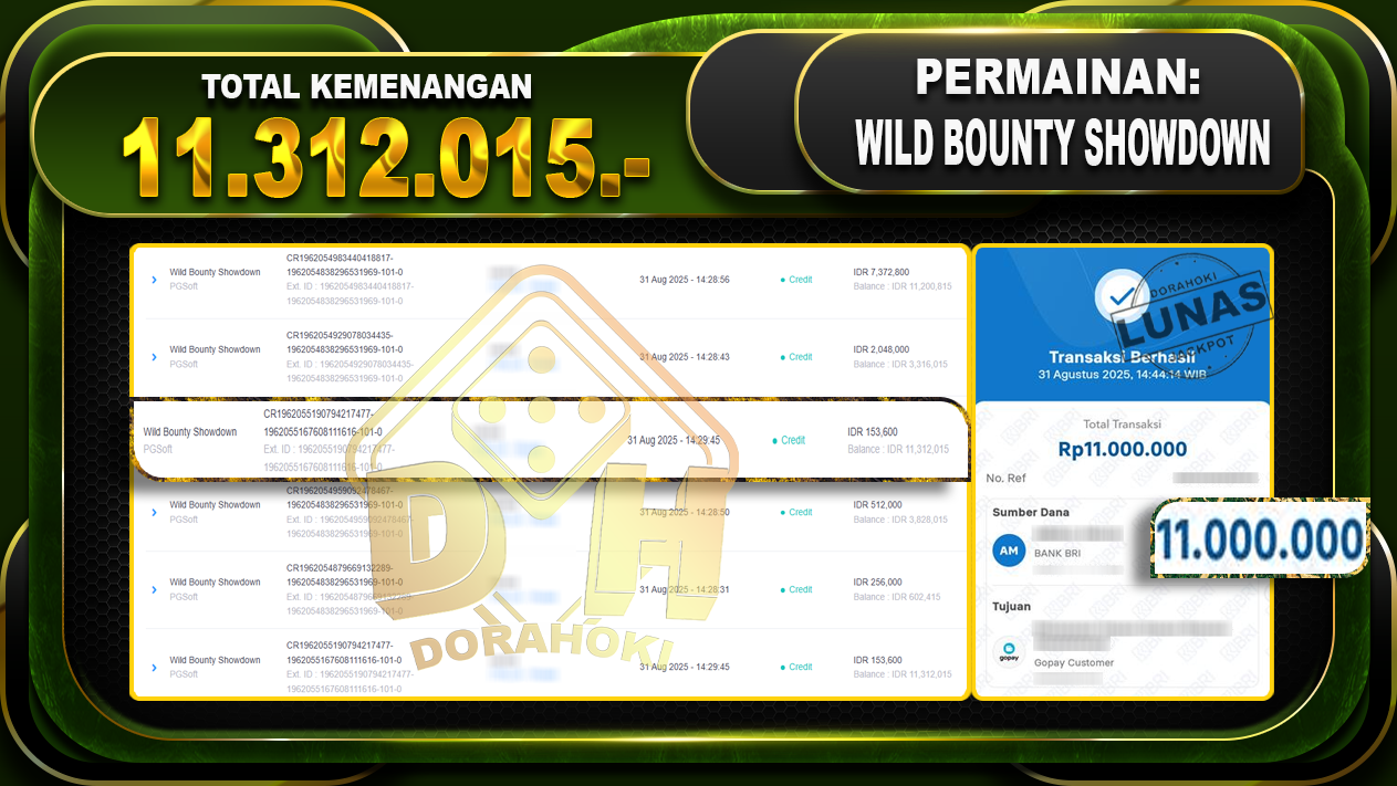 Bukti JP Wild Bounty Showdown – ucapkan selamat kepada user id Vacxxxx atas kemenangan di Wild Bounty Showdown dengan total kemenangan Rp.11.312.015,- Yang pasti nya langsung LUNAS sesuai bukti ya bosku. Dorahoki nih bosku berapapun akan tetap kami bayar lunas ya bosku